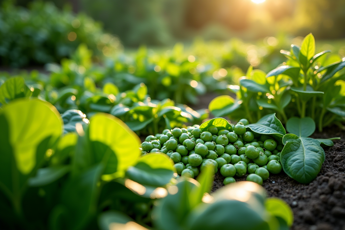 • Engrais verts : certaines plantes, comme les légumineuses, peuvent être cultivées puis enfouies dans le sol pour y apporter de l’azote.